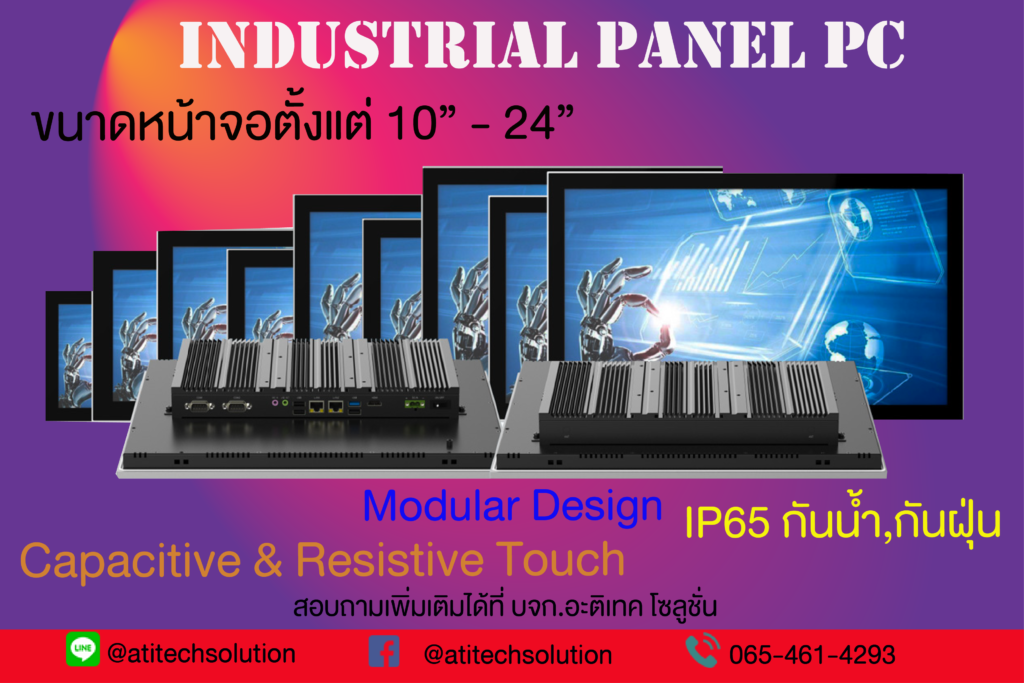 แบบที่ 3 : Industrial Touch Panel PC เป็นคอมพิวเตอร์ที่มาพร้อมกับหน้าจอสัมผัส และ CPU /RAM/HDD ที่มีให้เลือกใช้ ตามความต้องการได้อย่างหลากหลาย มีขนาดตั้งแต่ 10.1” 12.1” 15”, 17” ,18.5”,19″21.5″และ 24 ” ด้วยน้ำหนักเบา จึงเหมาะสำหรับการติดตั้งใช้งานแบบติดผนัง (wall mounting) เหมาะสำหรับการใช้งานควบคุม งานตรวจสอบและแสดงผล ที่ต้องการความสะดวกสบายโดยไม่ต้องใช้ Mouse & Keyboard ต่อเพิ่ม